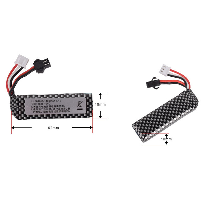 Featuring a standard SM plug connector, it ensures secure plug-and-play compatibility with most RC tanks and electric toys. The compact size (62×18×10mm) makes it ideal for 1:16 scale models and other space-constrained applications. Built with grade A cells and multi-layer safety protection against overcharge, over-discharge, and short circuits. CE, RoHS, and UN38.3 certified for safety compliance.