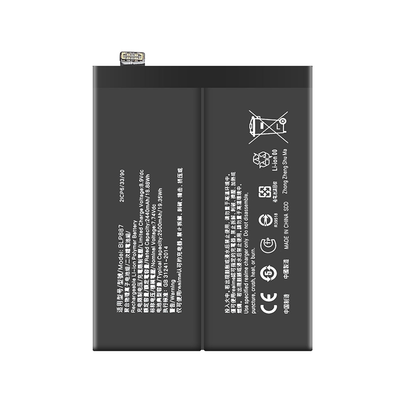 Restore the fast-charging power of your Realme GT series phone with this high-quality BLP887 5000mAh replacement battery. Engineered for GT Neo 2, GT2 Pro, and GT Neo 3 models, this dual-cell Li-Polymer pack delivers reliable performance and fully supports 65W to 150W fast charging depending on your device. Built-in multi-layer safety protection guards against overcharge, over-discharge, and short circuits. Made with grade A cells. CE, RoHS, and UN38.3 certified for safety compliance. Professional installation recommended as the battery is not user-replaceable.