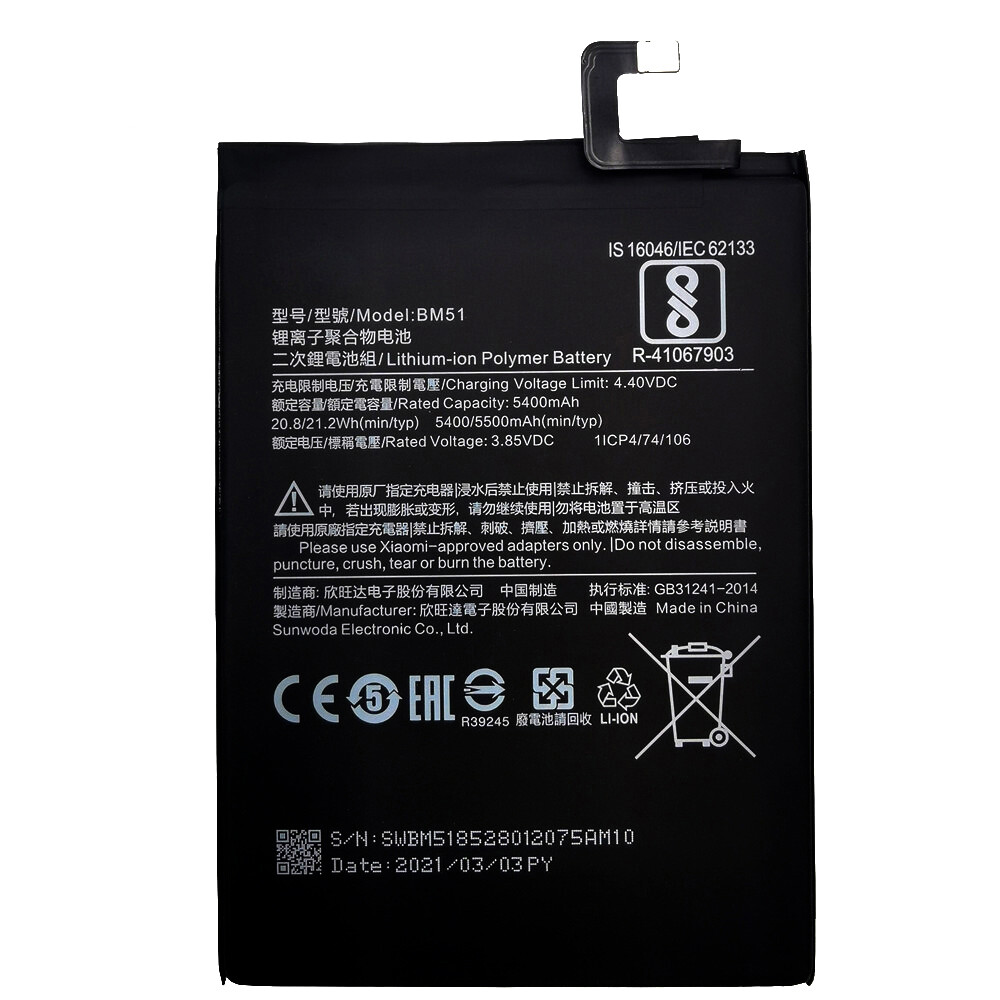 Restore long-lasting power to your Xiaomi Mi Max 3 with this high-capacity BM51 5500mAh replacement battery. This battery for Xiaomi Mi Max 3 is designed to match the original specifications, providing a reliable and secure fit. Engineered for safety and durability, it ensures stable performance for extended daily use. The BM51 5500mAh capacity is ideal for users seeking to revive their phone’s battery life, supporting full-day usage for browsing, streaming, and calls. A perfect replacement battery for Mi Max 3 to solve fast drainage and charging issues.