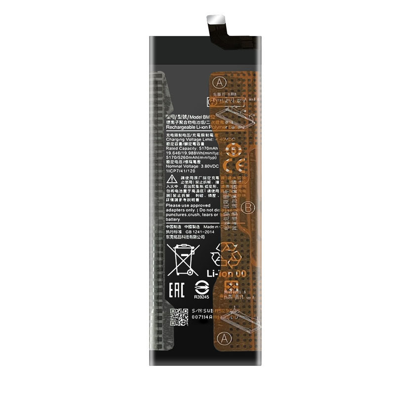 Extend the daily endurance of your Xiaomi smartphone with this BM52 5260mAh replacement battery. Designed specifically for Note 10 Lite, Note 10 Pro, and CC9 Pro models, this Li-Polymer cell delivers reliable power for photography, multimedia, and everyday tasks. Built-in multi-layer safety protection guards against overcharge, over-discharge, and short circuits. Made with grade A cells. CE, RoHS, and UN38.3 certified for safety compliance. Professional installation recommended as the battery is not user-replaceable.