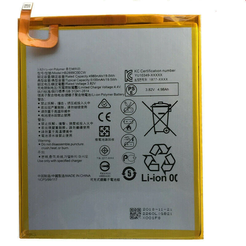 Maximize the uptime of your Huawei MediaPad T5 tablet with the compatible HB2899C0ECW 5100mAh replacement battery. Designed for models AGS2-L09, AGS2-W09, and AGS2-L03, this high-capacity cell provides the sustained power needed to support the device’s 10-inch display for extended periods of video streaming, online learning, web browsing, and entertainment.