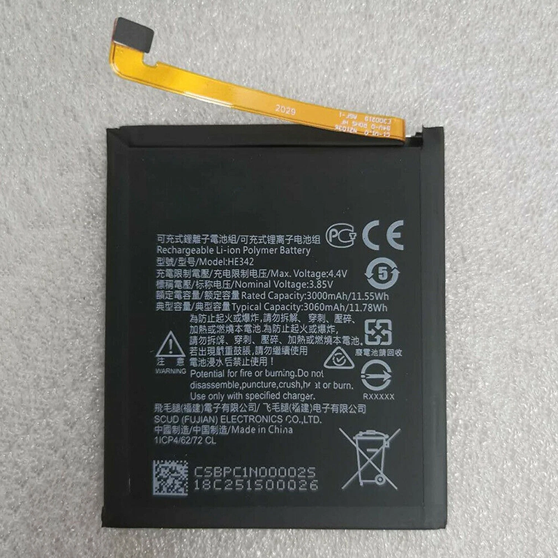 Refresh the battery life of your compatible Nokia smartphone with this HE342 3000mAh replacement battery. This cell is designed for models including the Nokia X6 (2018 release), Nokia 6.1 Plus (model TA-1099), Nokia X5, and Nokia 5.1 Plus (model TA-1109), offering a unified power solution for these devices.