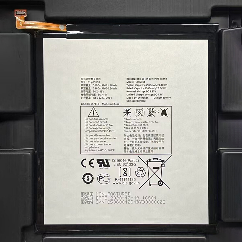 Restore the power of your Alcatel Tab 8 with this high-quality TLp053C1 5500mAh replacement battery. This genuine Li-Polymer cell delivers reliable performance for browsing, streaming, and daily tasks. Built-in multi-layer safety protection guards against overcharge, over-discharge, and short circuits. Made with grade A cells. CE, RoHS, and UN38.3 certified for safety compliance.